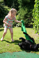 Byla jsem navštívit Asianu, holku se zelenou mašlí. Z vrhu byla nejmenší, ano, je to ta s nemocným očkem. Je úžasné vidět, jak z maličkého štěňátka rostě krásná fletí fenka. Má se úžasně. Jak já bych chtěla být jeden den v její štěnecí kůži - za barákem les, na zahradě potok a milující lidi všude kolem. A ještě musím napsat, co mě chytlo za srdíčko, vystoupila jsem z auta, Asiana běžela radostně přivítat příchozího (to je u fletů normální jev), čuchla si ke mě a v tu chvíli rozkvetla, rozvlnila se, rozzářila se...prostě mě poznala!