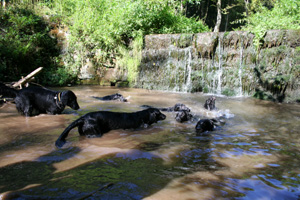 Oslavu půlroku života štěnisek jsme zvolili báječnou, společnou vycházku do kouzelného údolí Záhořanského potoka. Sešlo se nás 7 štěňátek - Ajša , naše Vážka, Lantí, Afri, Astalavista-Yukki, Aki a Aston, jejich mamina Apína, doprovodil nás Čert a z domova to jistil hnědý Monti, takže se sešlo pěkných 10 fletíků!